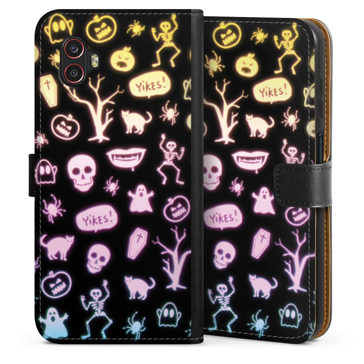 Kätevässä puhelinkotelossa on kovamuovinen polykarbonaattikotelo sisällä, jonka ansiosta puhelimesi on hyvin suojattu. Ulompi kotelo ja läppä on valmistettu laadukkaasta Skai keinonahasta. Kotelo aukeaa sivuttain ja siinä on lokerot seteleille ja korteille. Kotelo sulkeutuu magneettiläpällä.