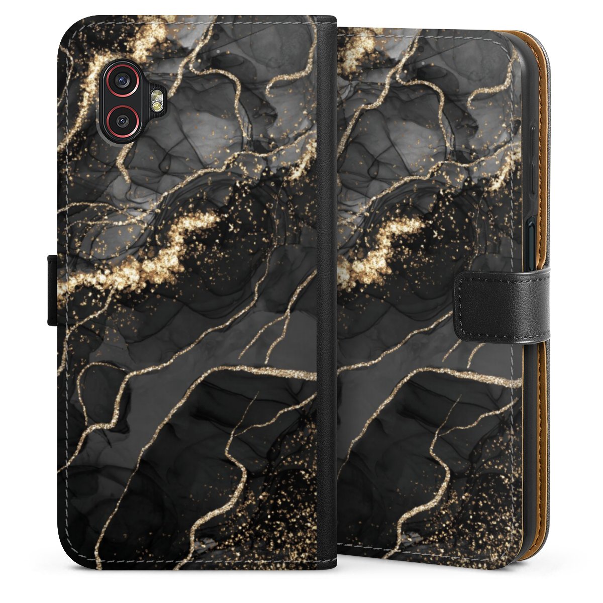 Dark Marble Swirls Gold Look