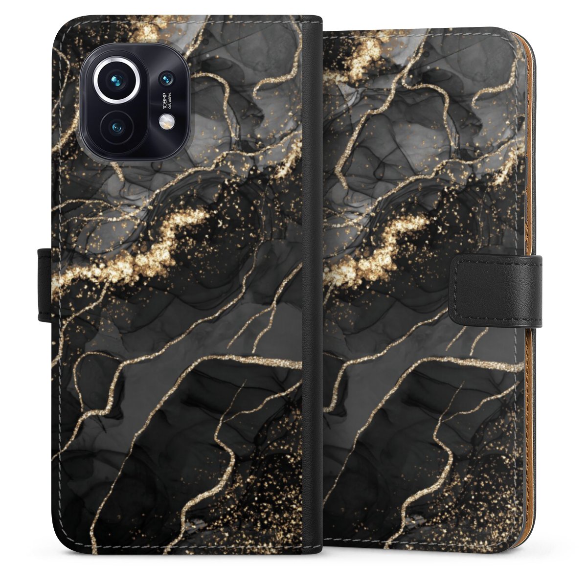 Dark Marble Swirls Gold Look