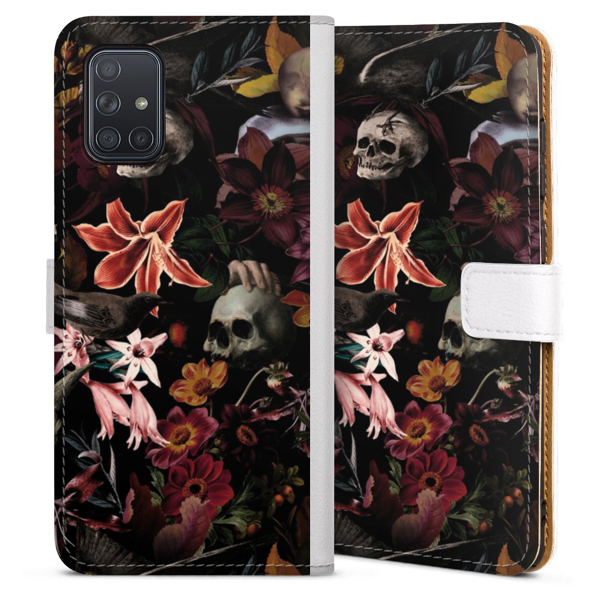 Skulls and Flowers on Dark Background