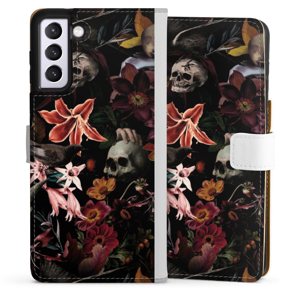 Skulls and Flowers on Dark Background