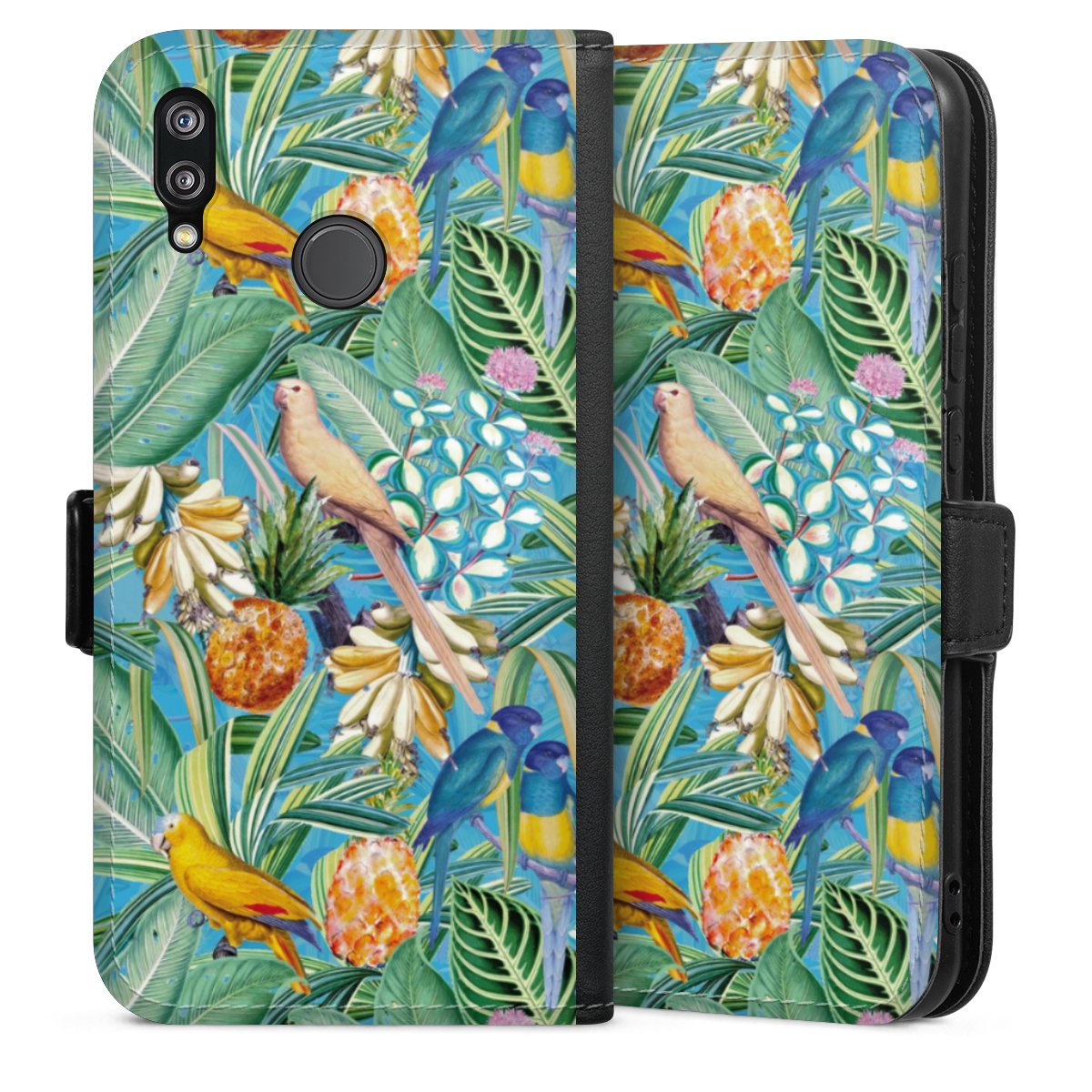 Tropical Parrots on Blue Wallpaper