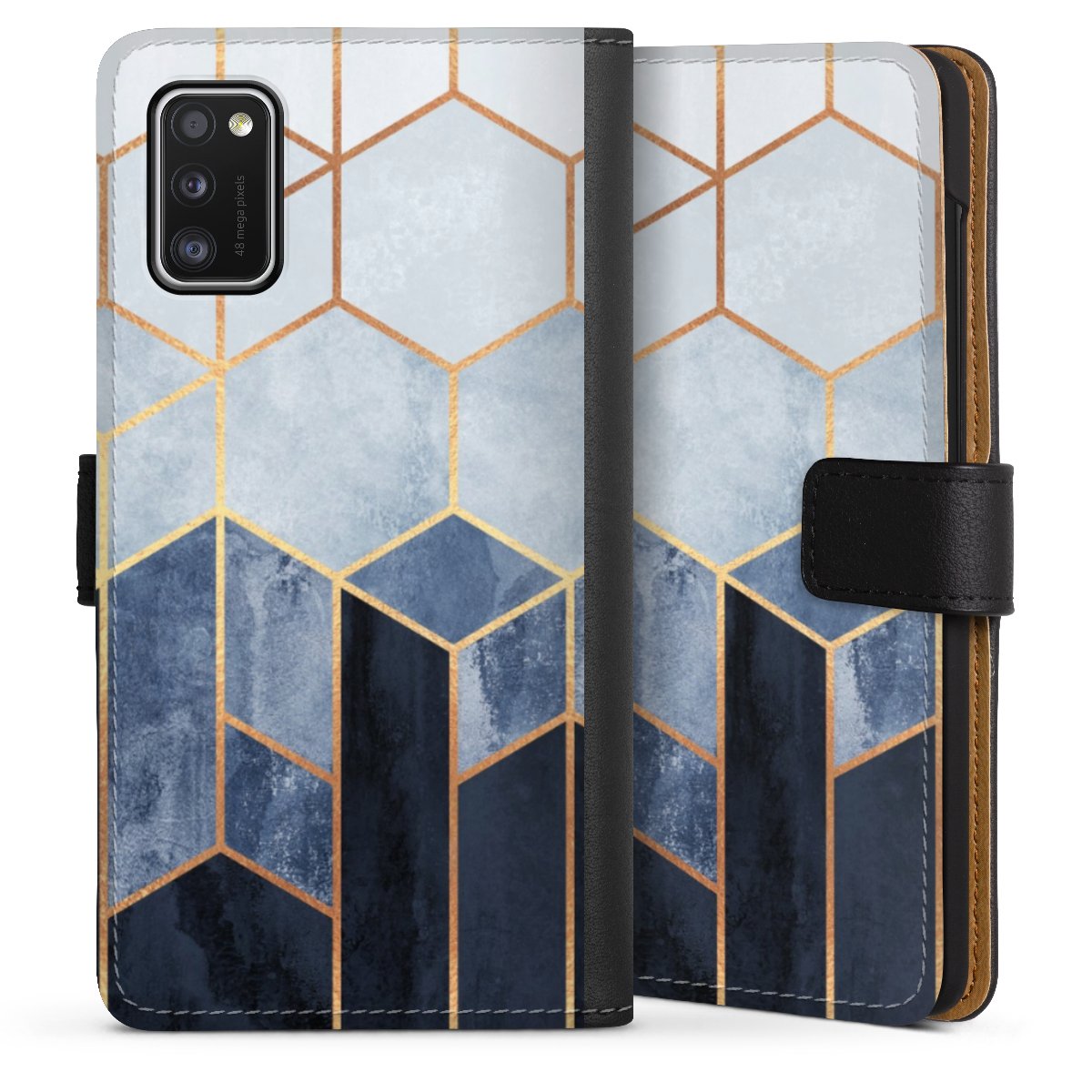 Soft Blue Hexagons Gold Print