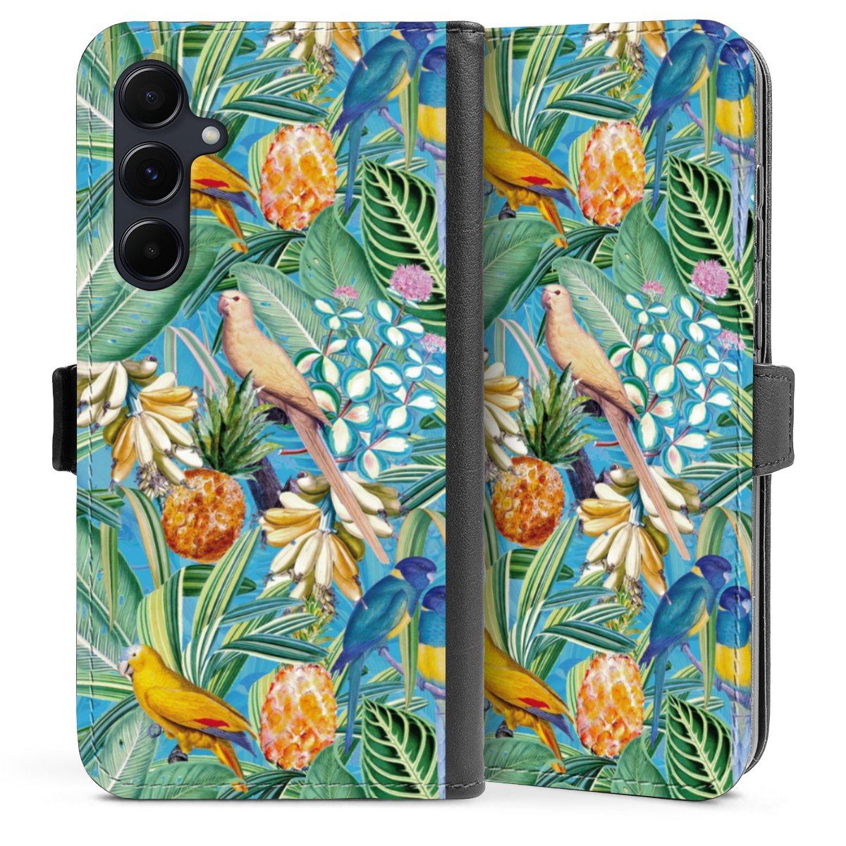 Tropical Parrots on Blue Wallpaper