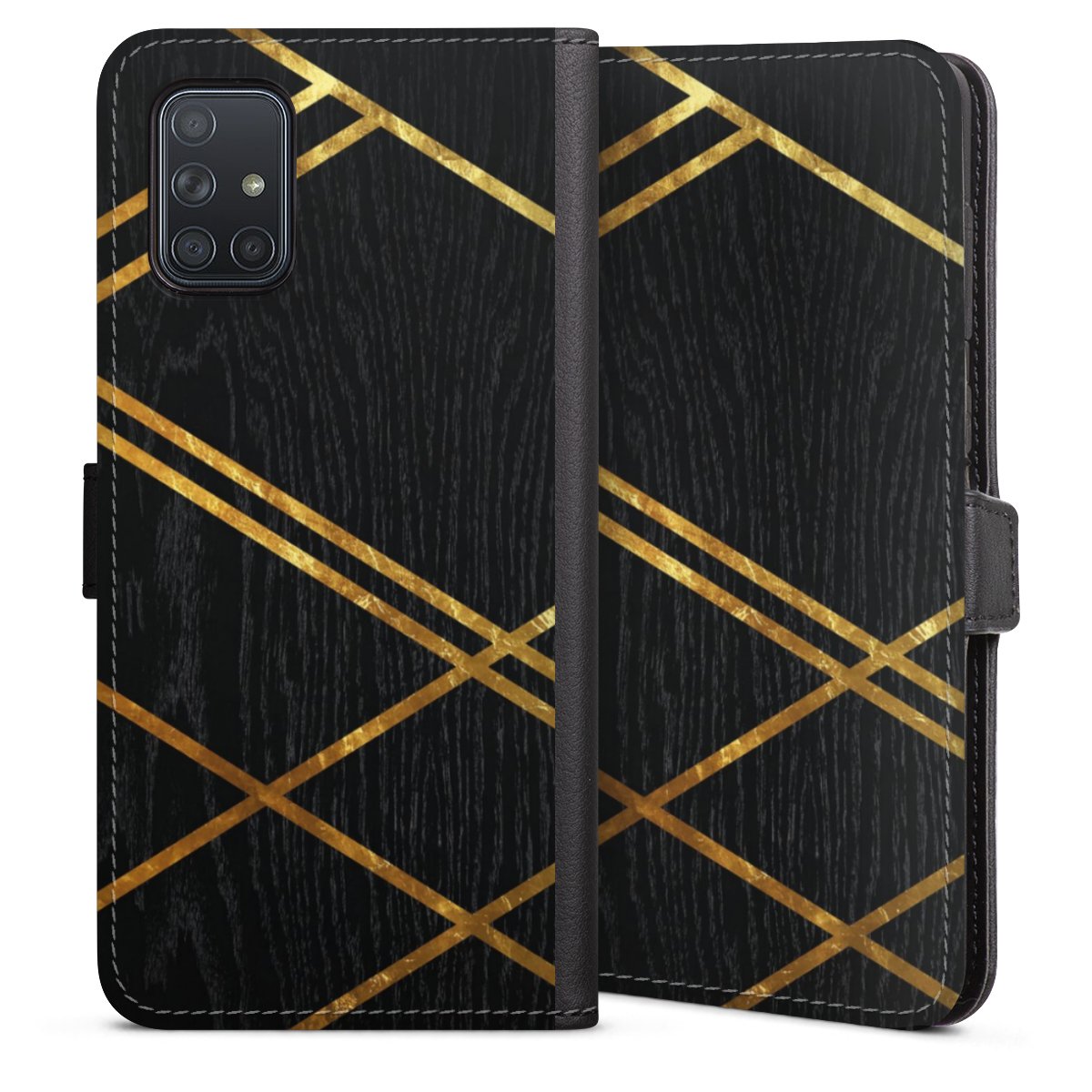 Black Geometric Pattern Golden Stripes