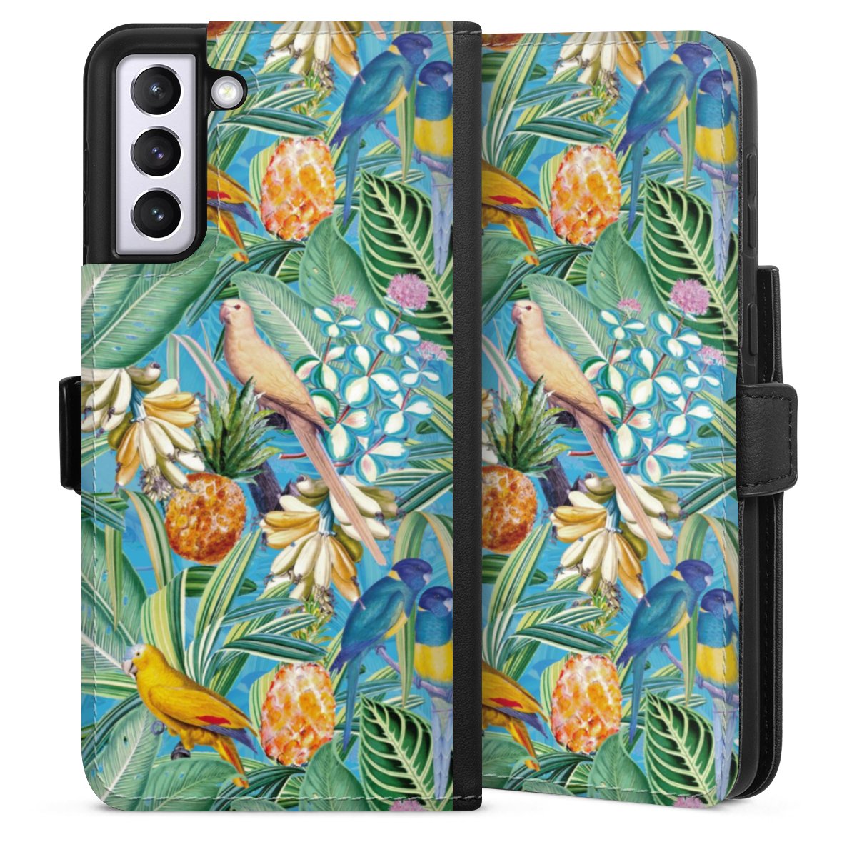 Tropical Parrots on Blue Wallpaper