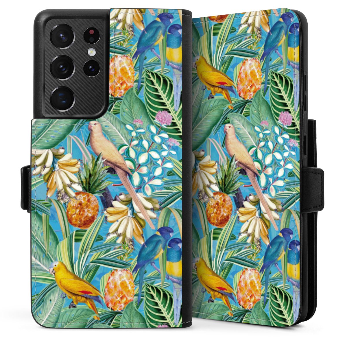 Tropical Parrots on Blue Wallpaper