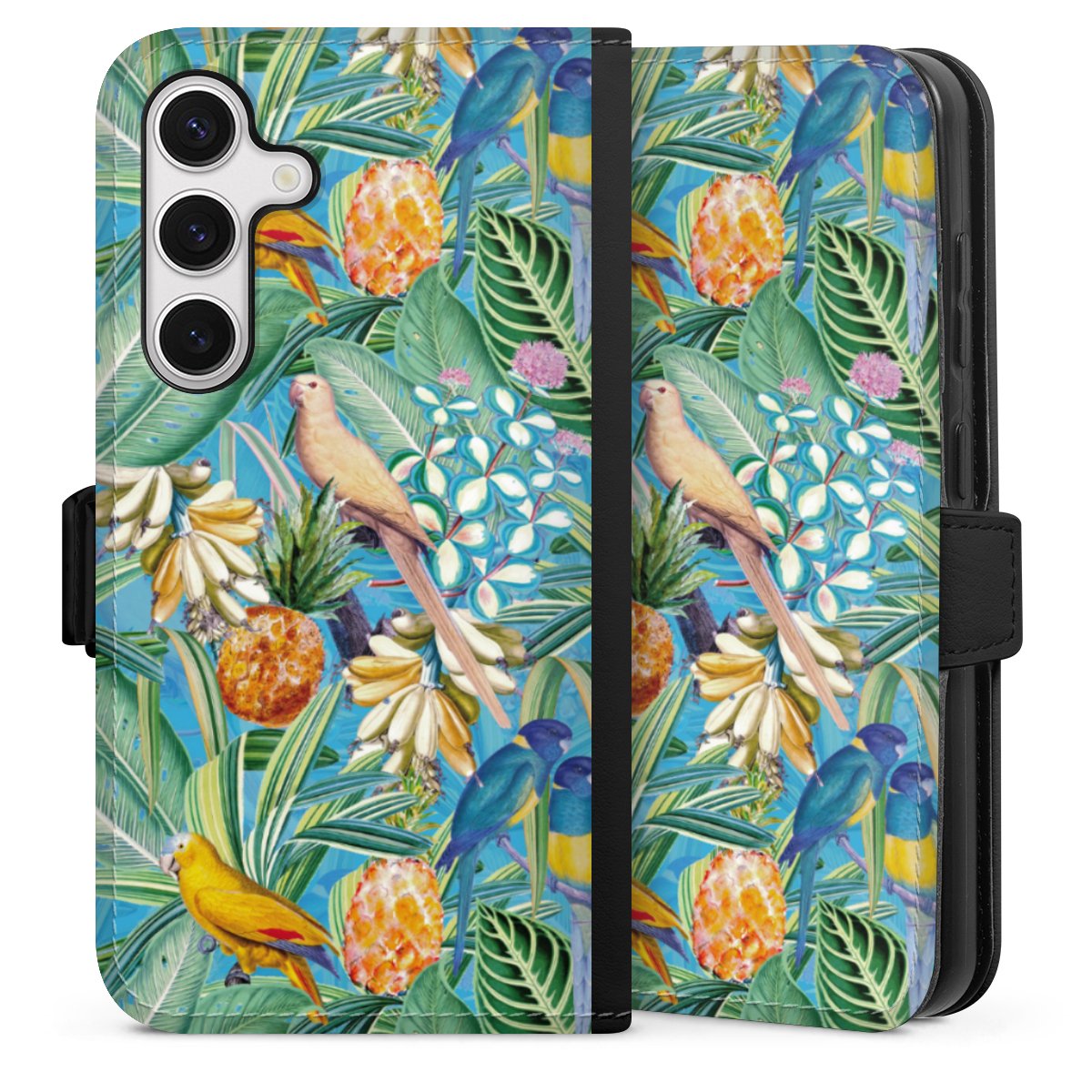 Tropical Parrots on Blue Wallpaper