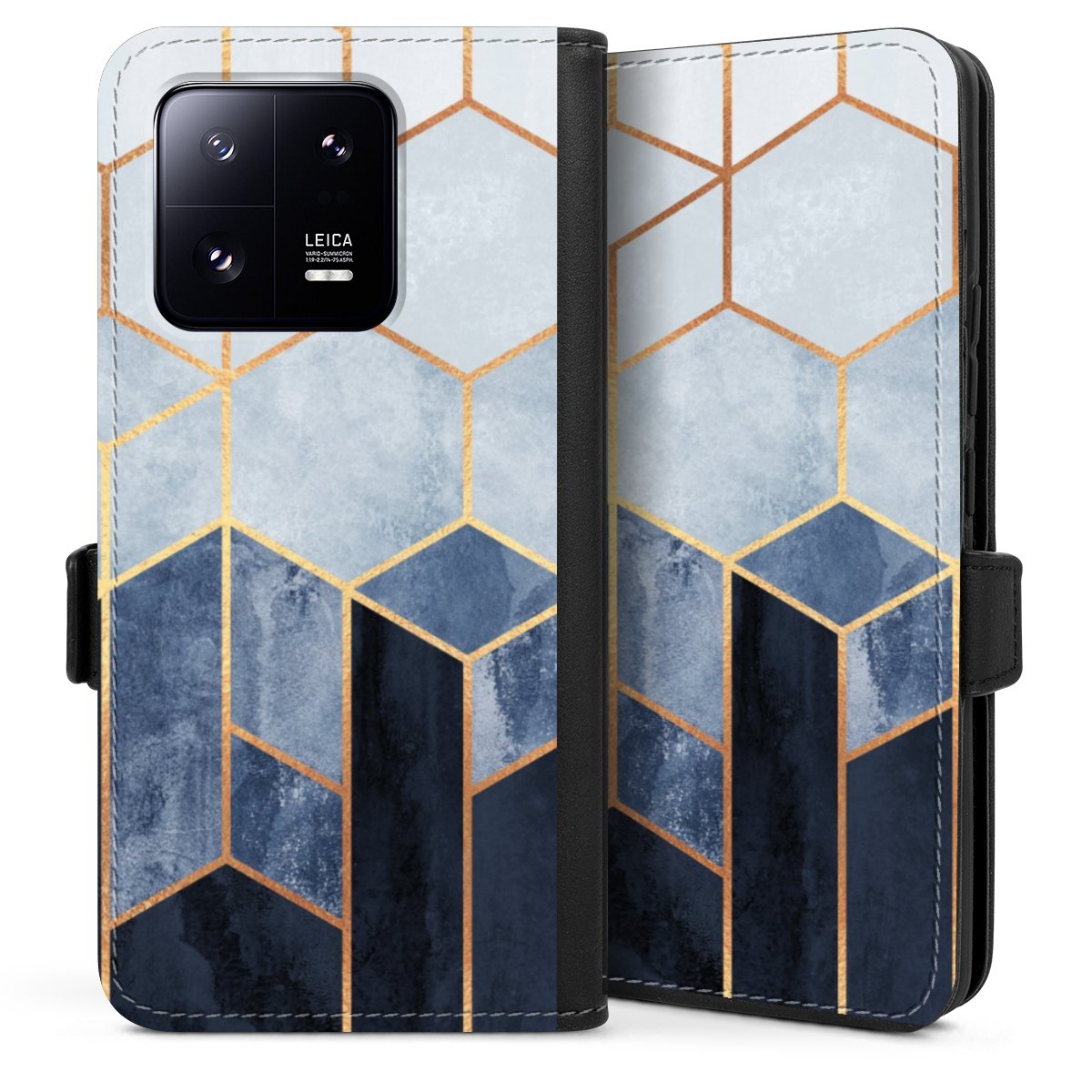 Soft Blue Hexagons Gold Print