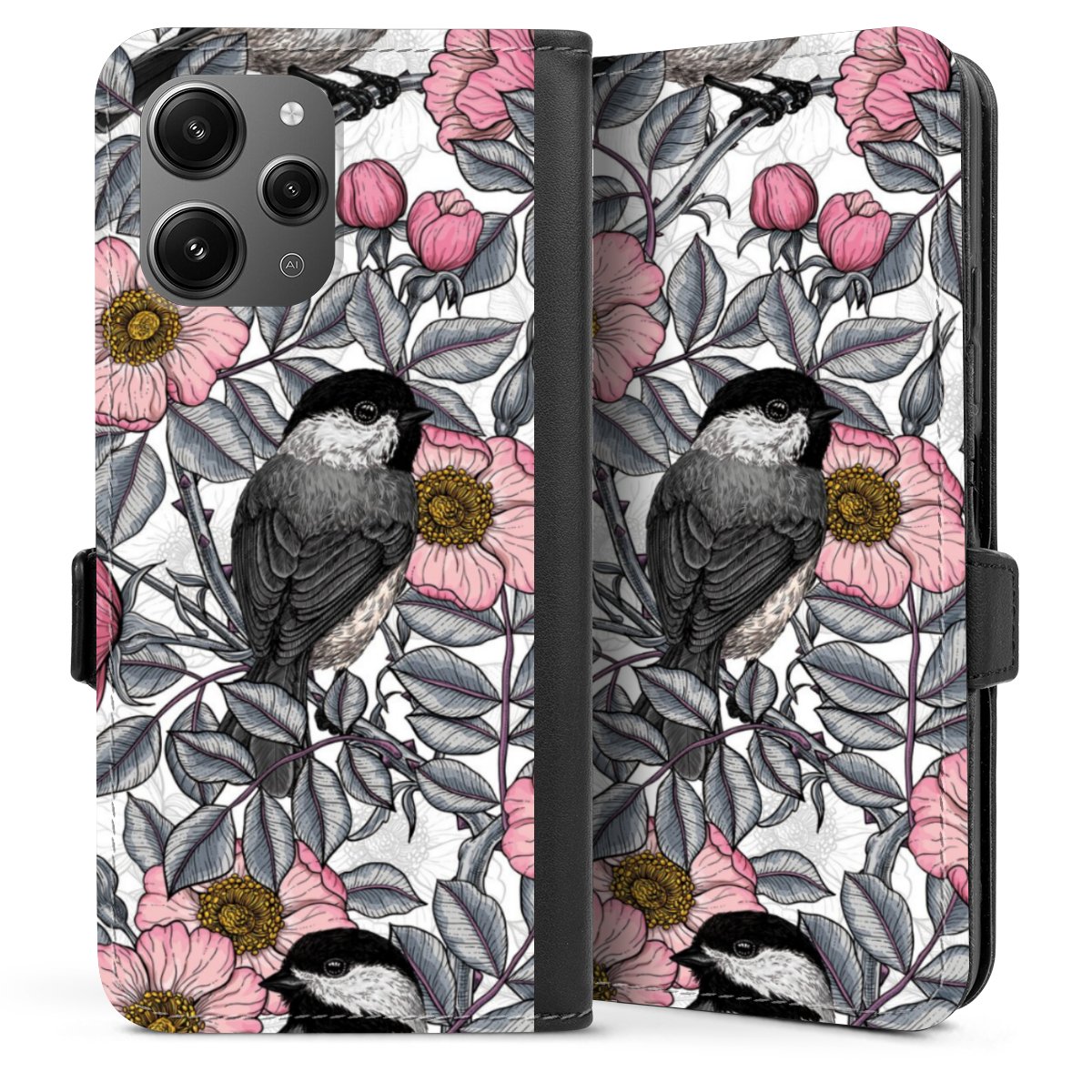 Chickadees and Wild Rose