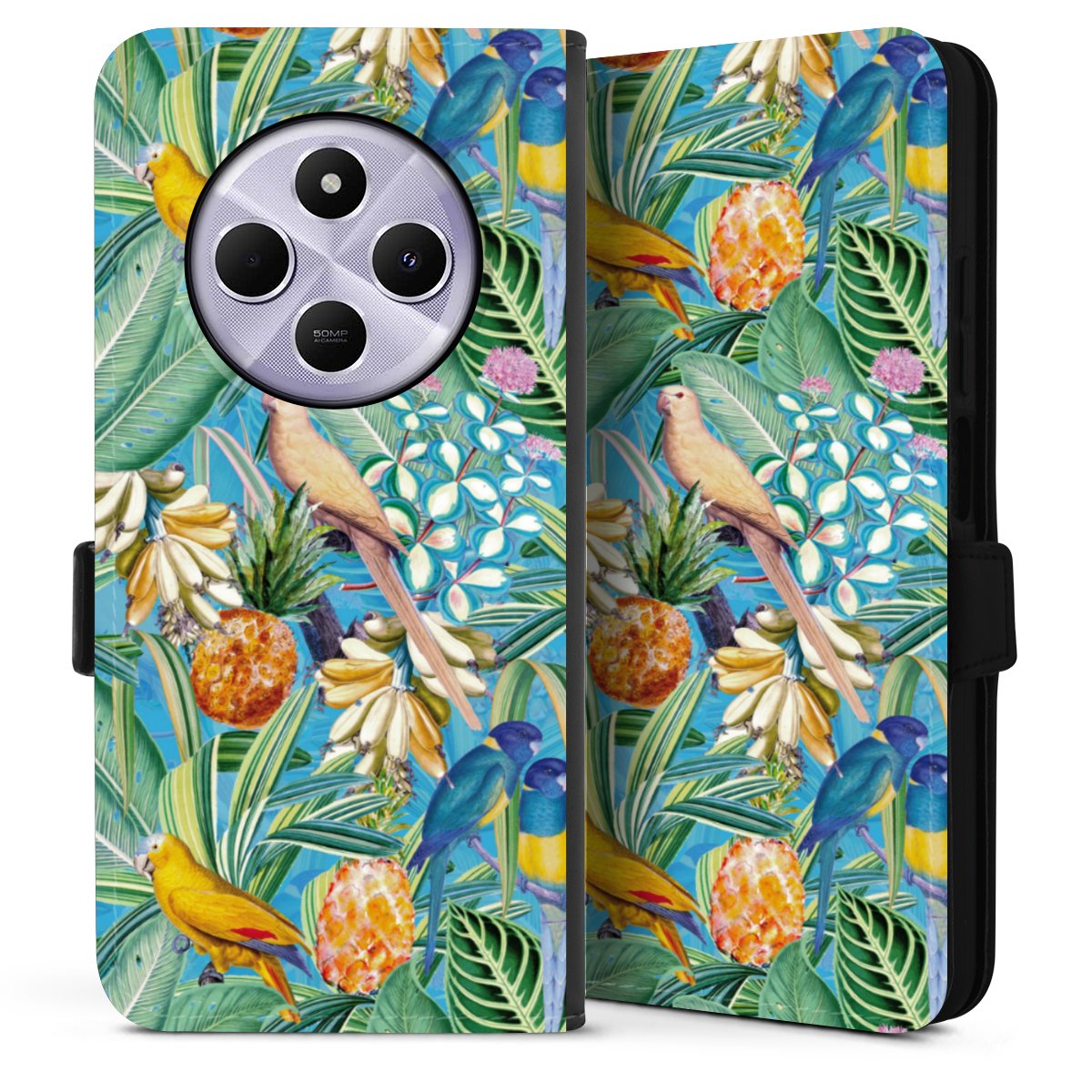 Tropical Parrots on Blue Wallpaper