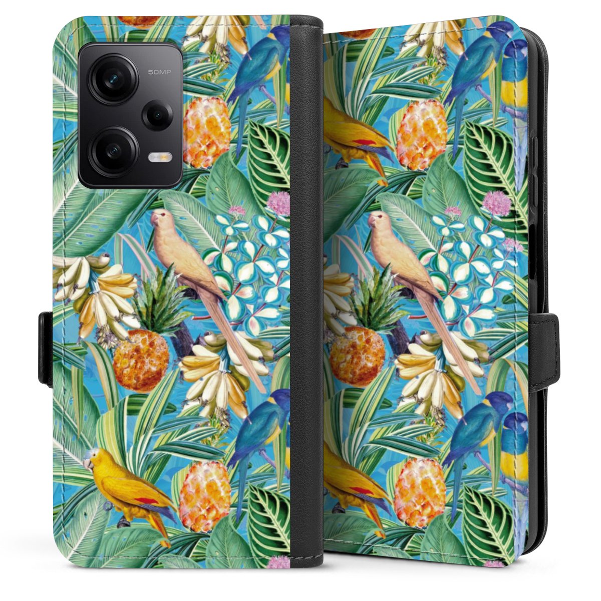 Tropical Parrots on Blue Wallpaper