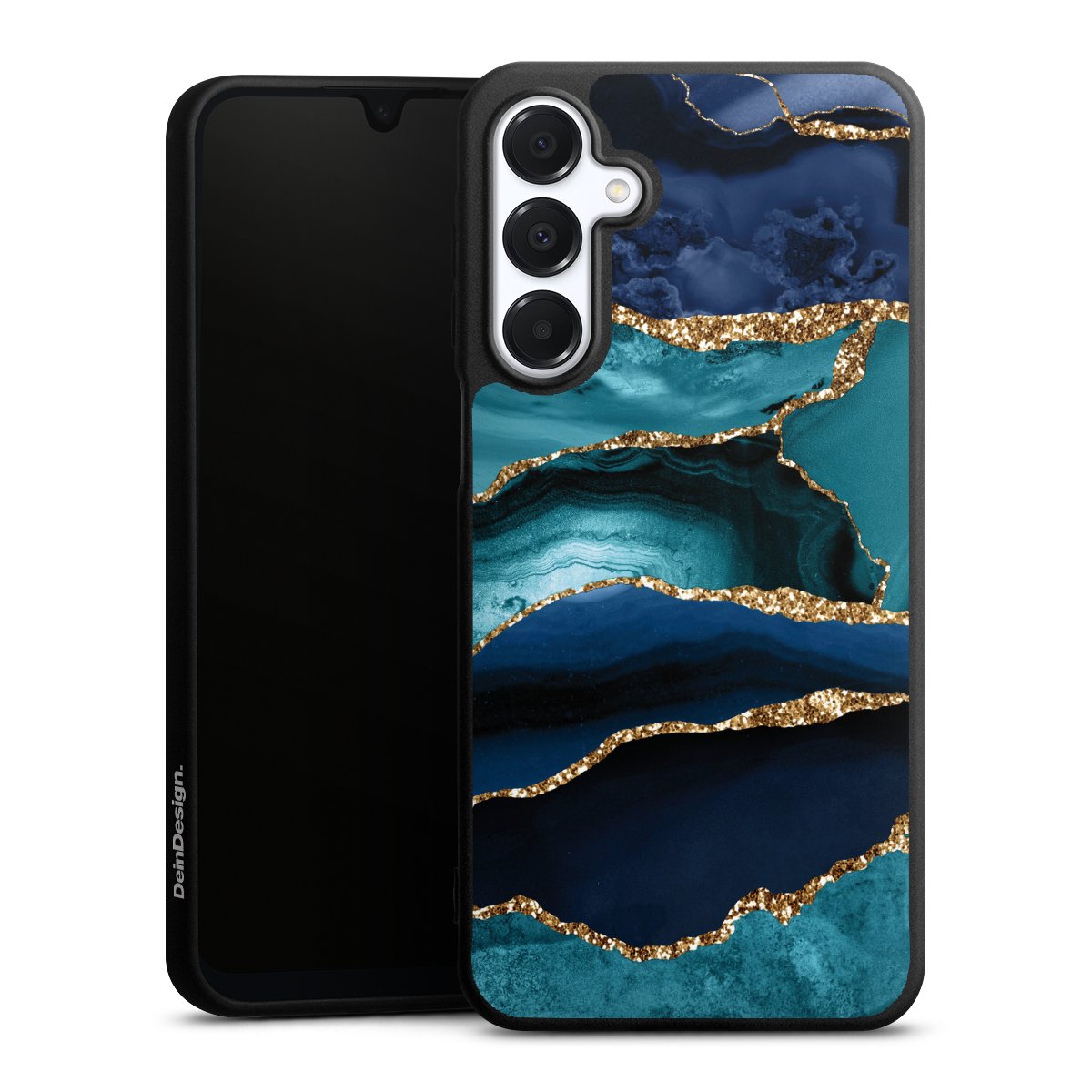 Dark and Light Blue Marble Gold Glitter Look