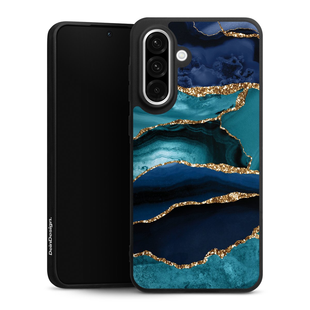 Dark and Light Blue Marble Gold Glitter Look