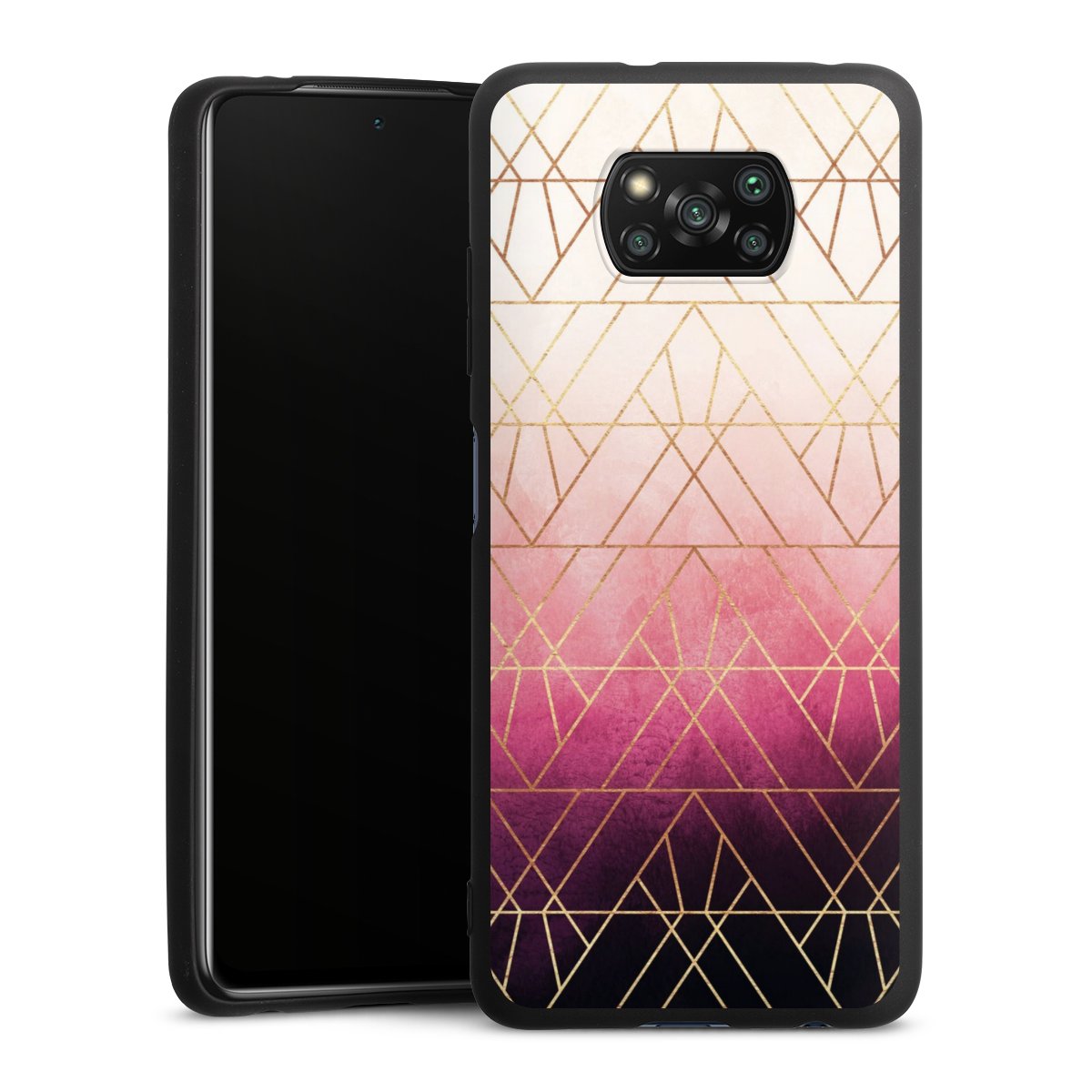 Pink Ombre Triangles Gold Print