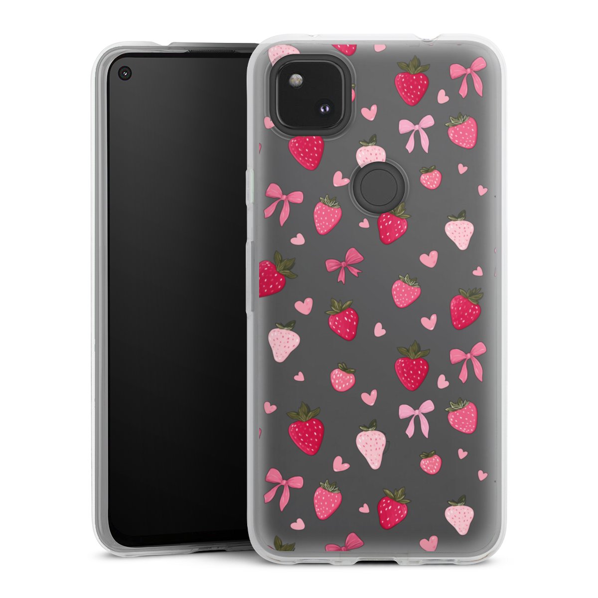 Strawberry Ribbon Pattern Pink Transparent