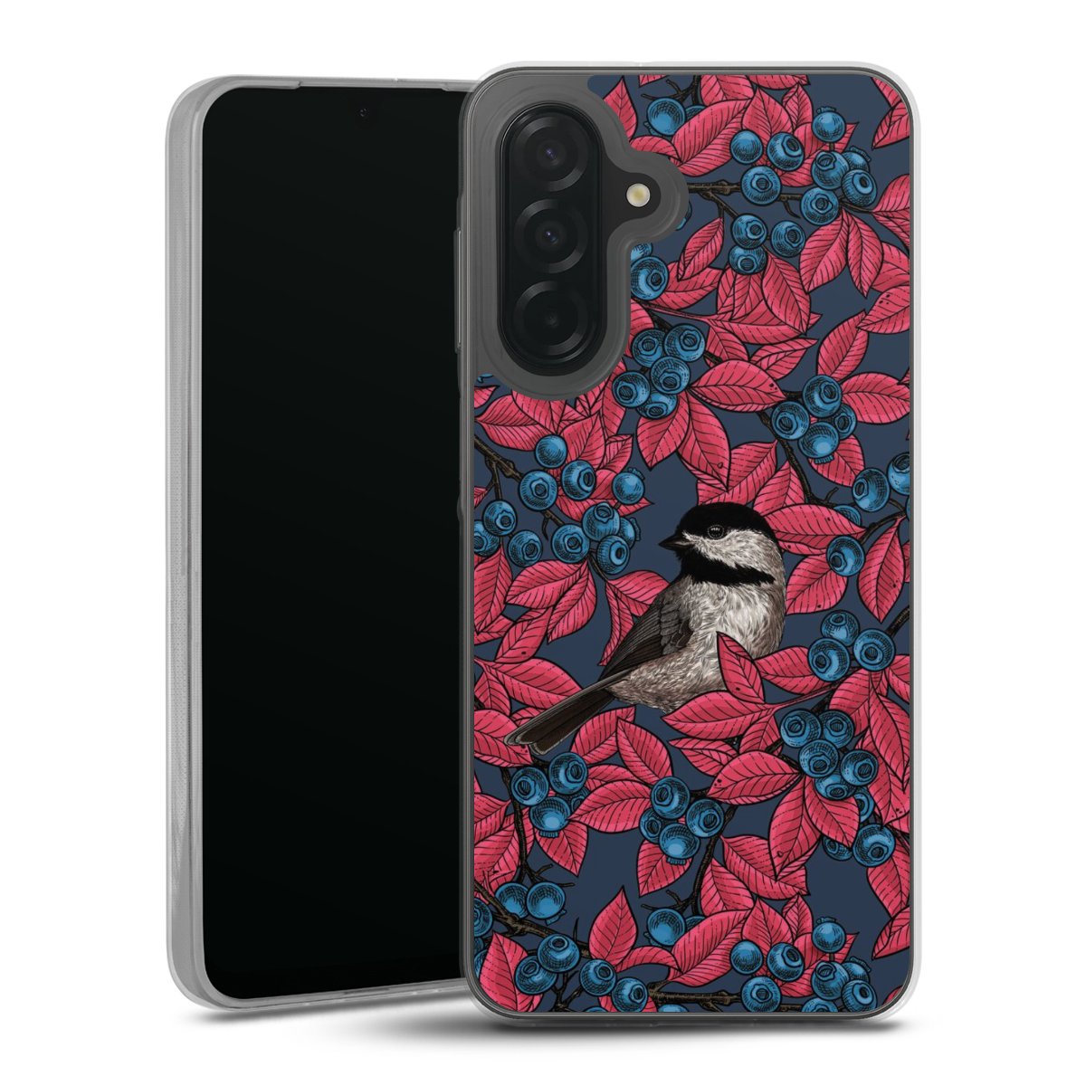 Blueberries And Birds On Navy