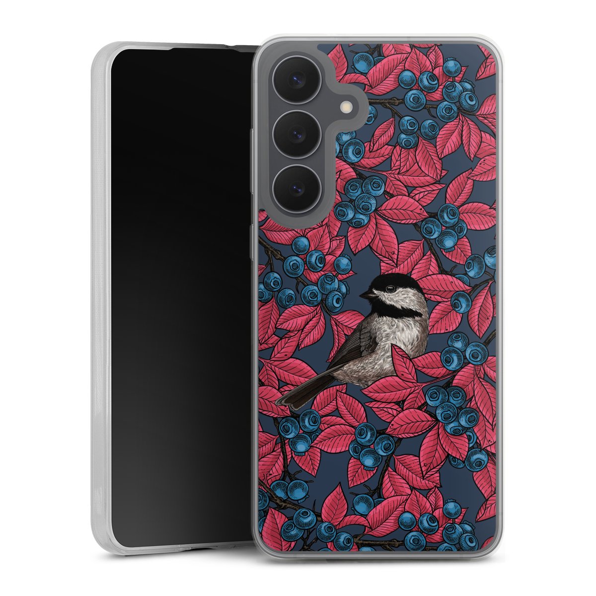 Blueberries And Birds On Navy