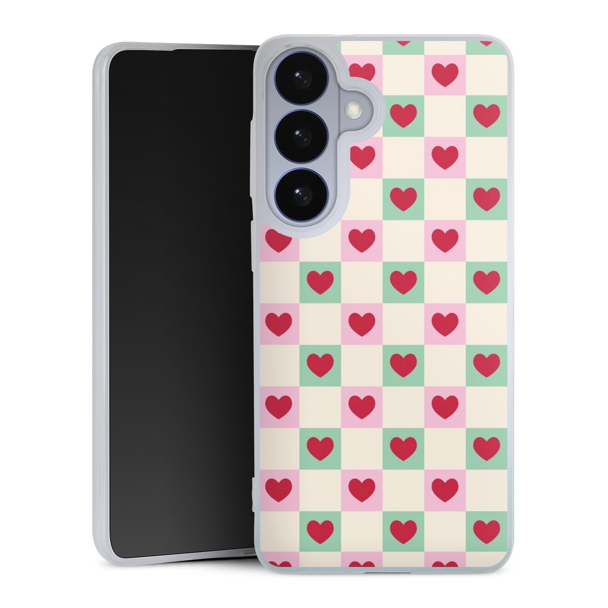 Valentine Checked Hearts Pattern Pink Green