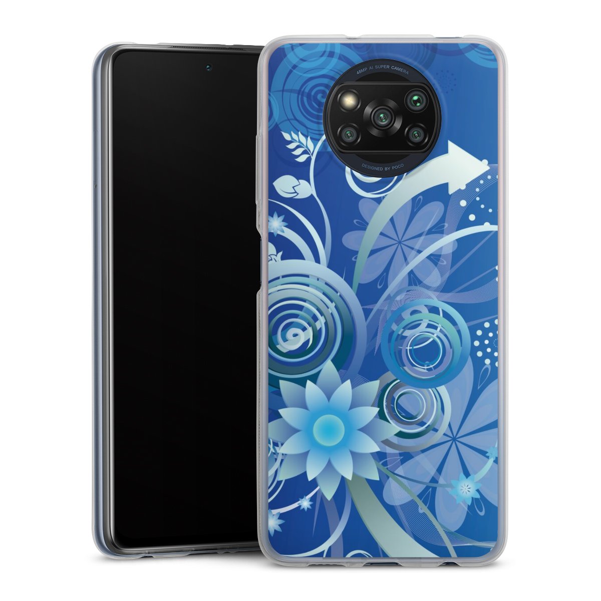 Flowers and Swirls Blue