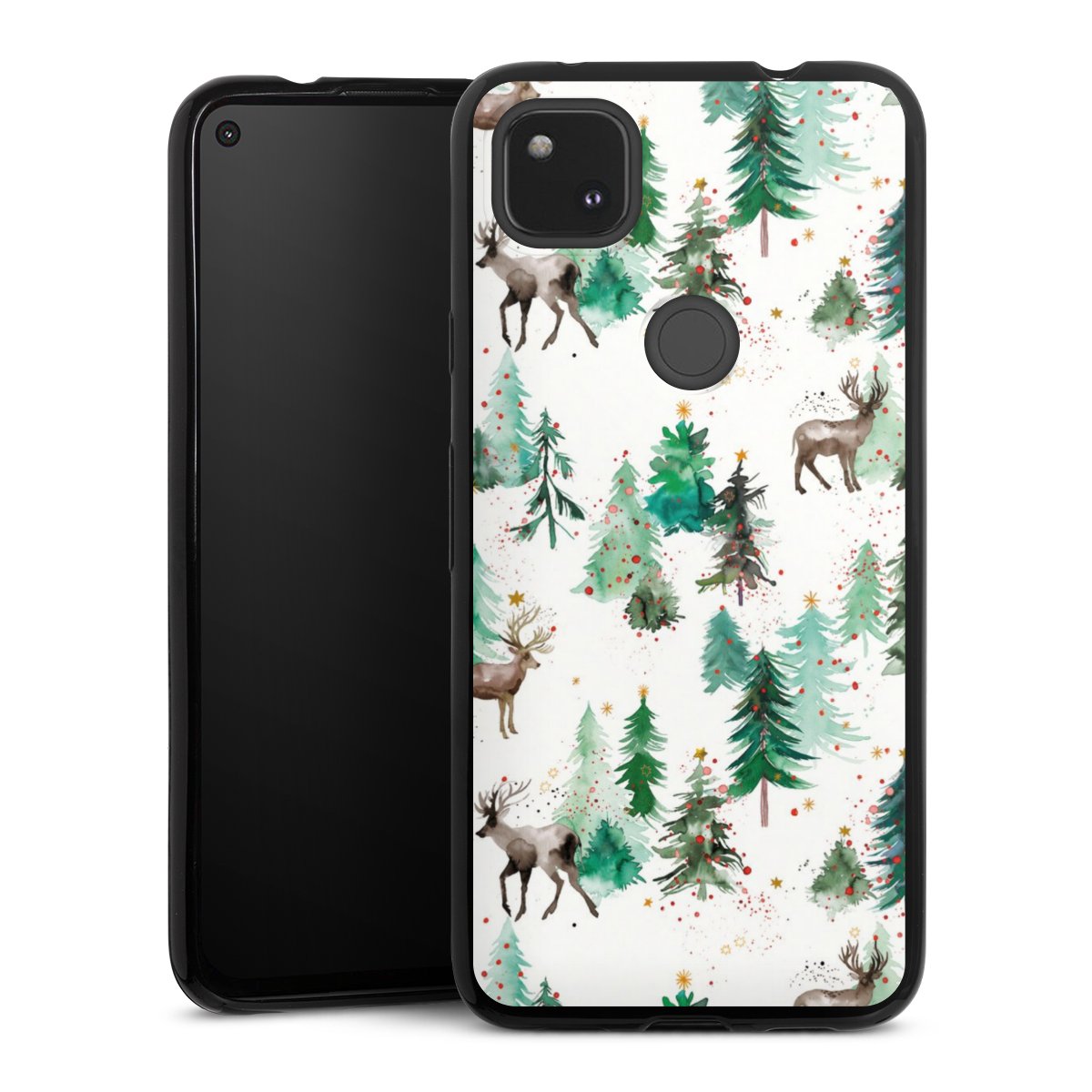 Deers and Winter Xmas Trees