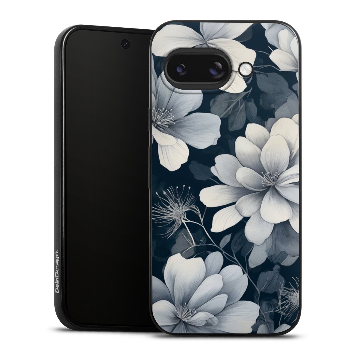 Negative Flower Blue White with AI