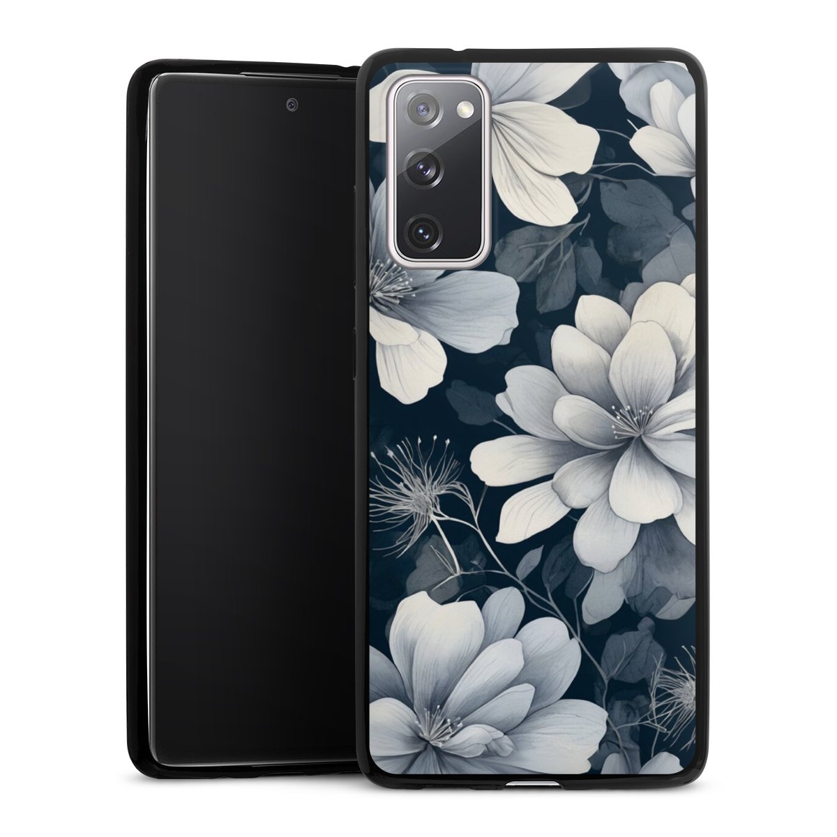 Negative Flower Blue White with AI