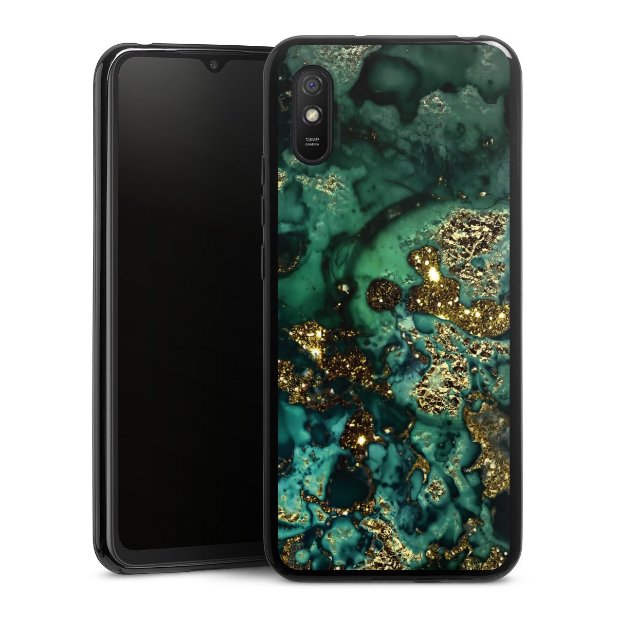 Cyan Glitter Marble Look