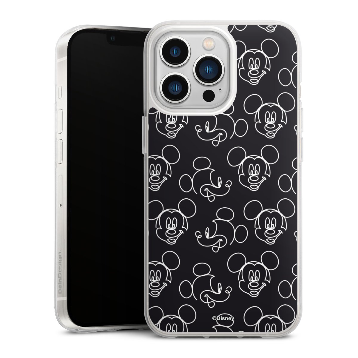 Disney Mickey Faces Black Line Art Pattern
