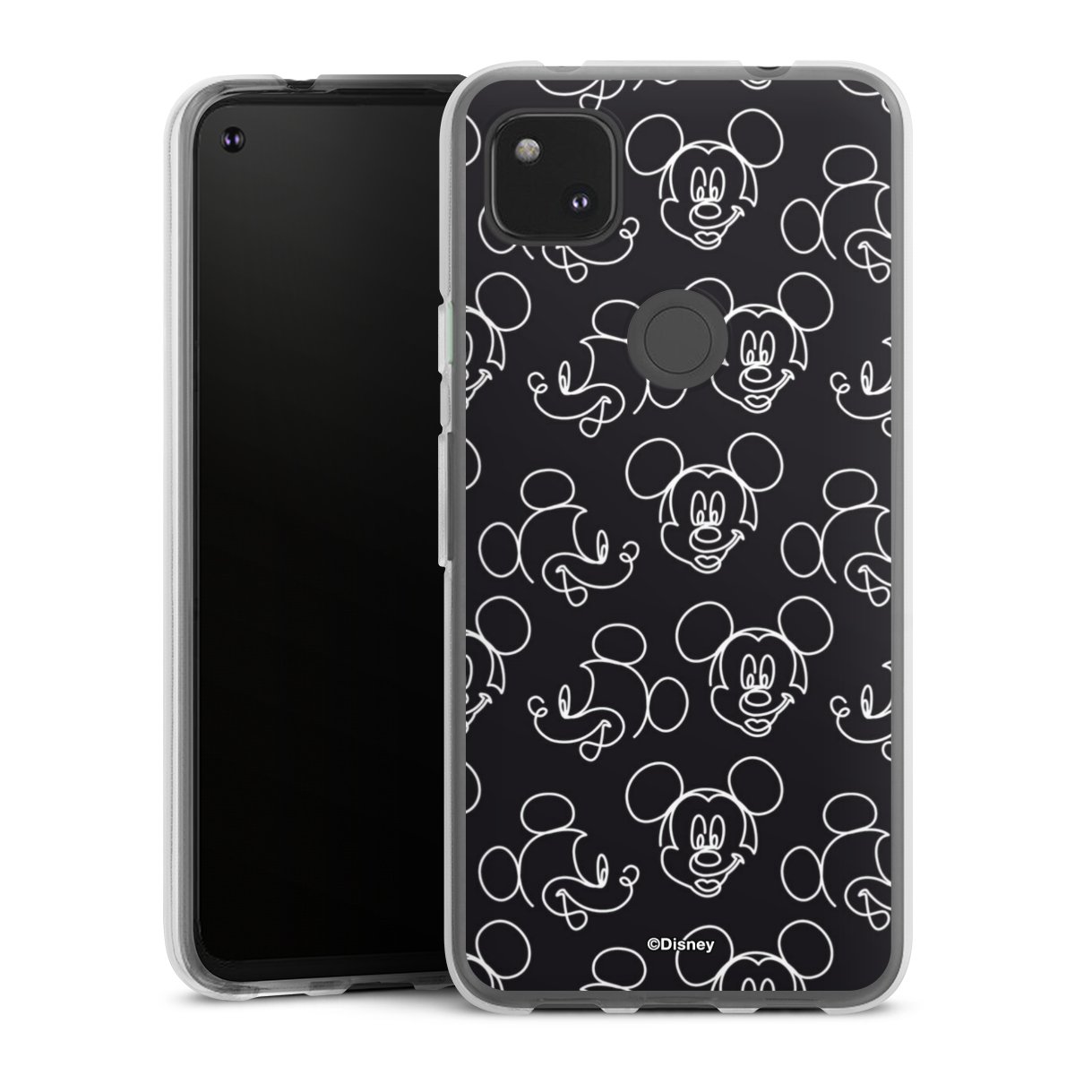 Disney Mickey Faces Black Line Art Pattern