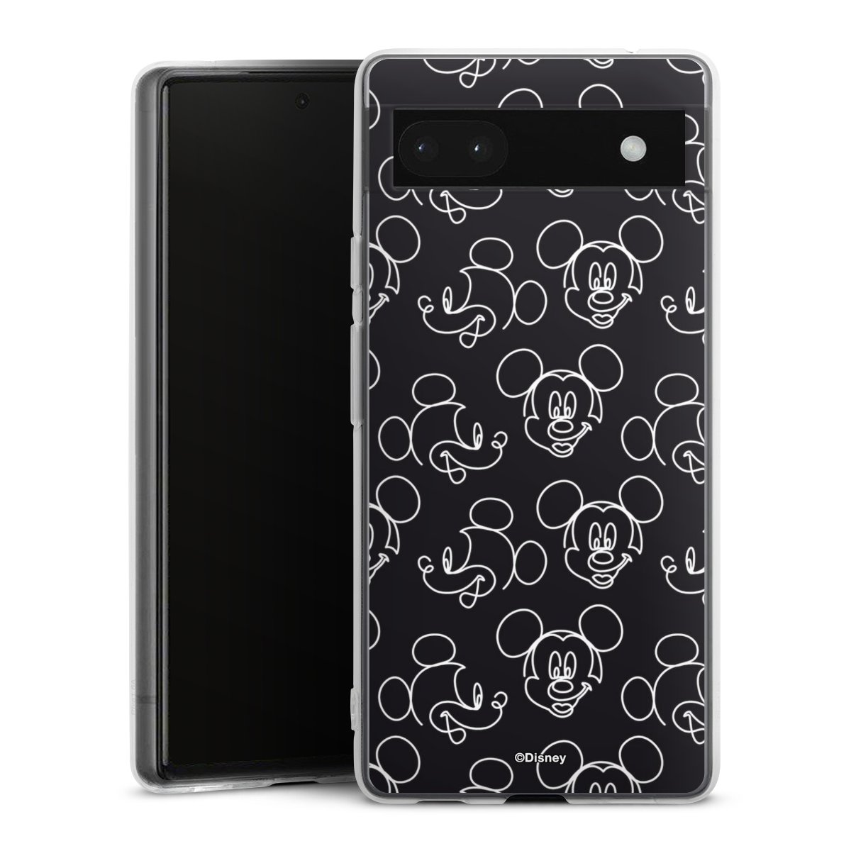 Disney Mickey Faces Black Line Art Pattern
