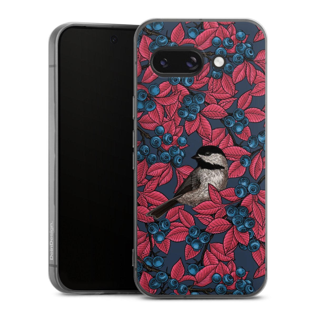 Blueberries And Birds On Navy