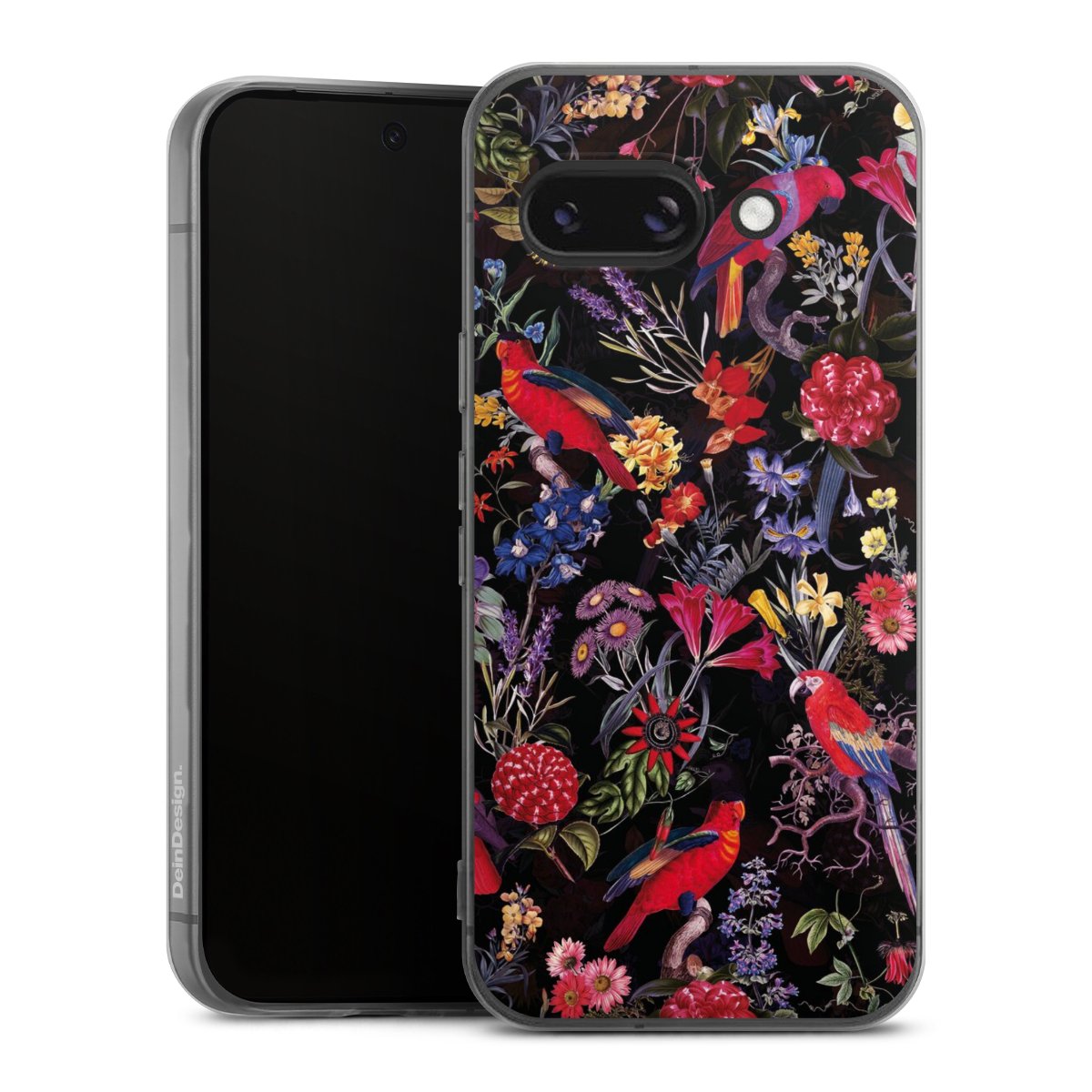Dark Flowers and Parrots