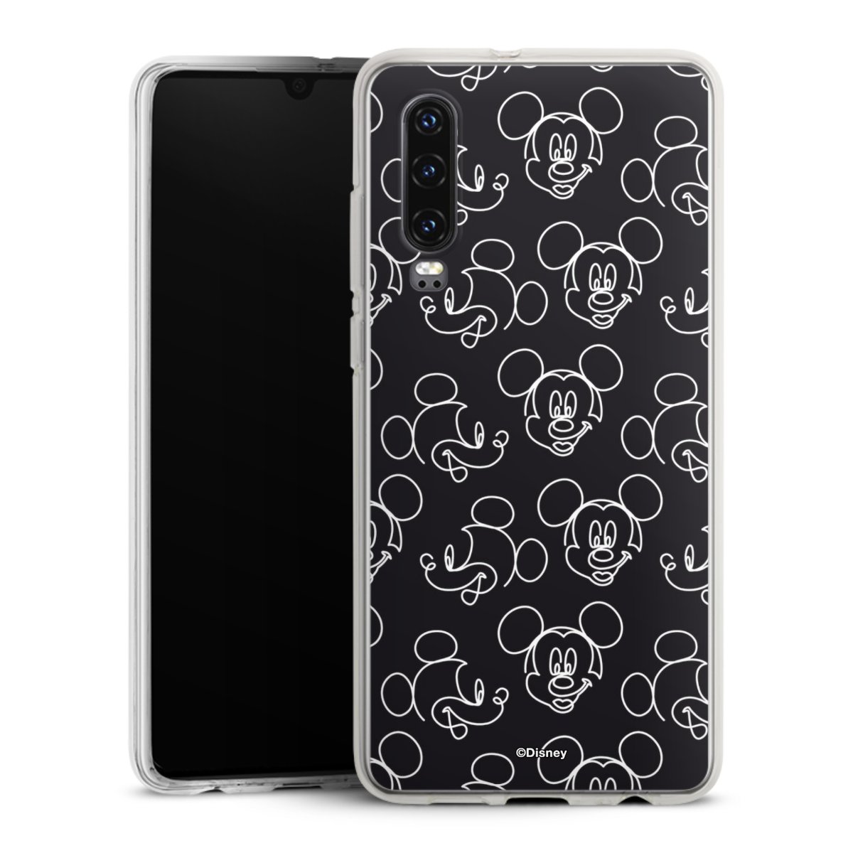 Disney Mickey Faces Black Line Art Pattern