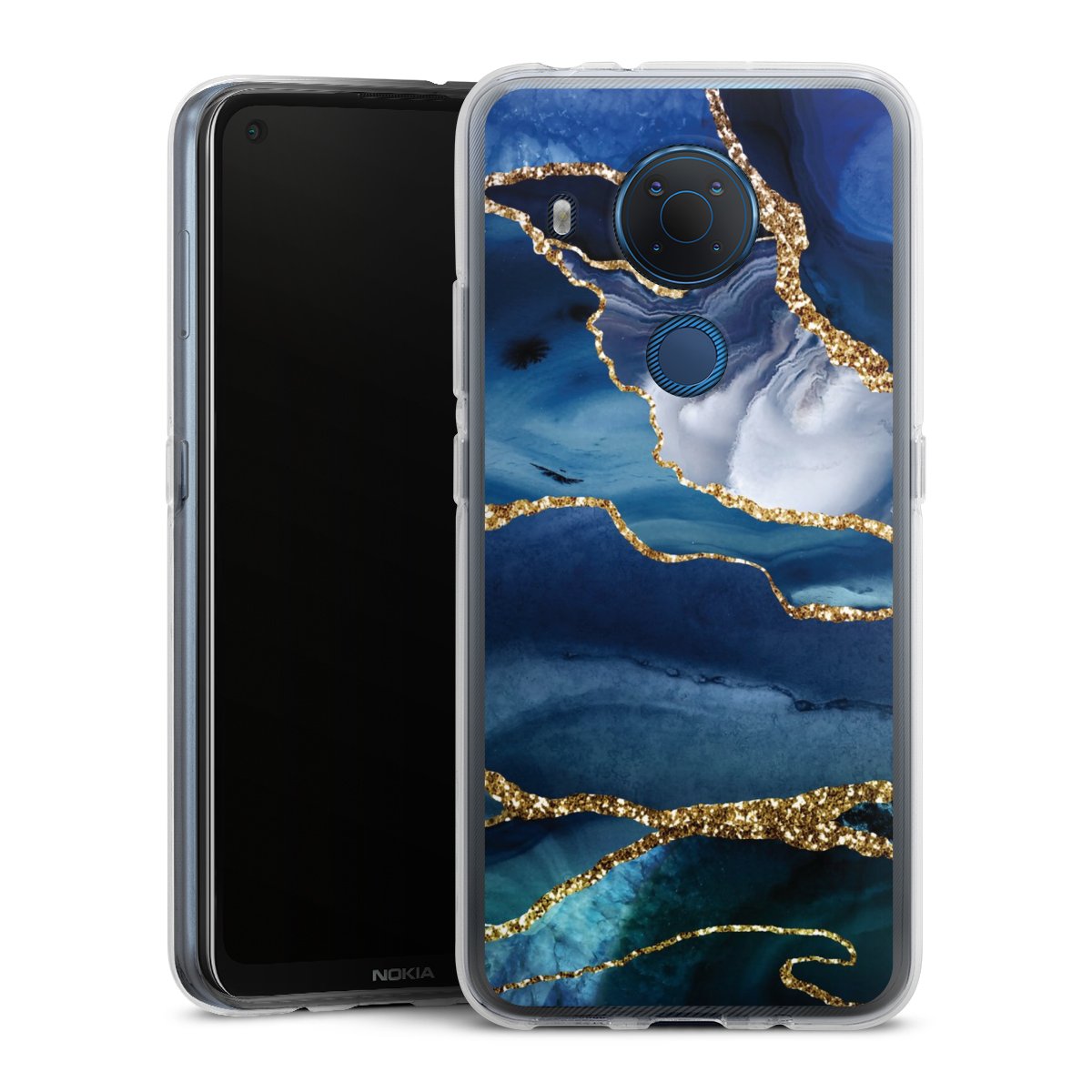 Blue Marble Gold Glitter Look