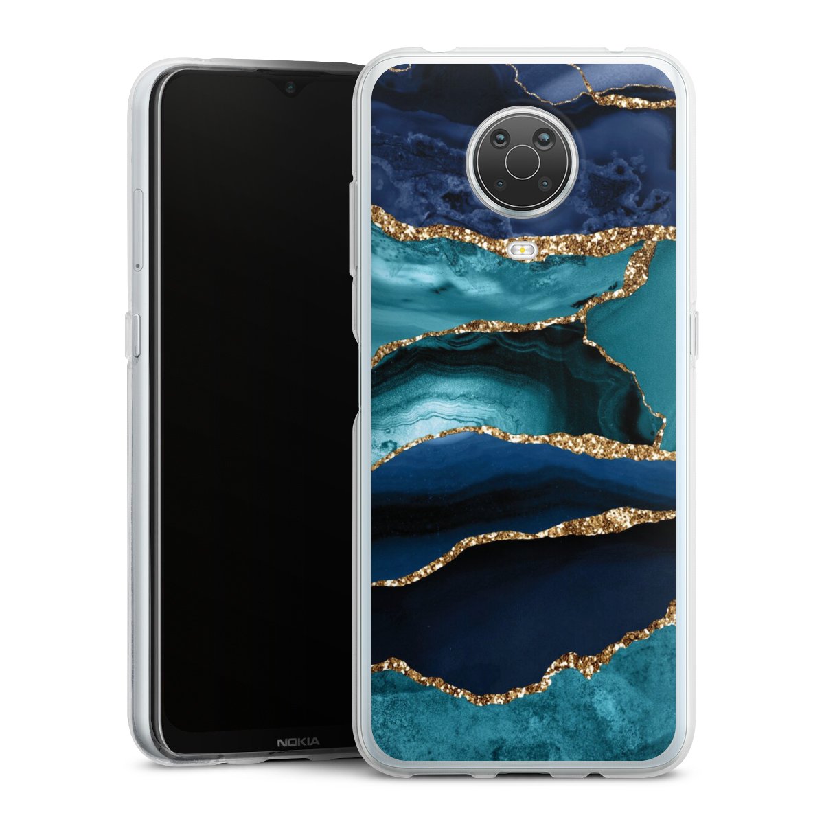 Dark and Light Blue Marble Gold Glitter Look