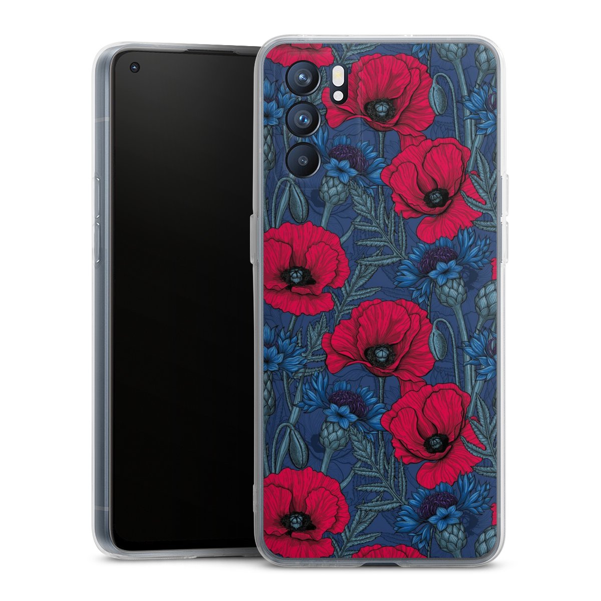Poppies and Cornflowers on Blue