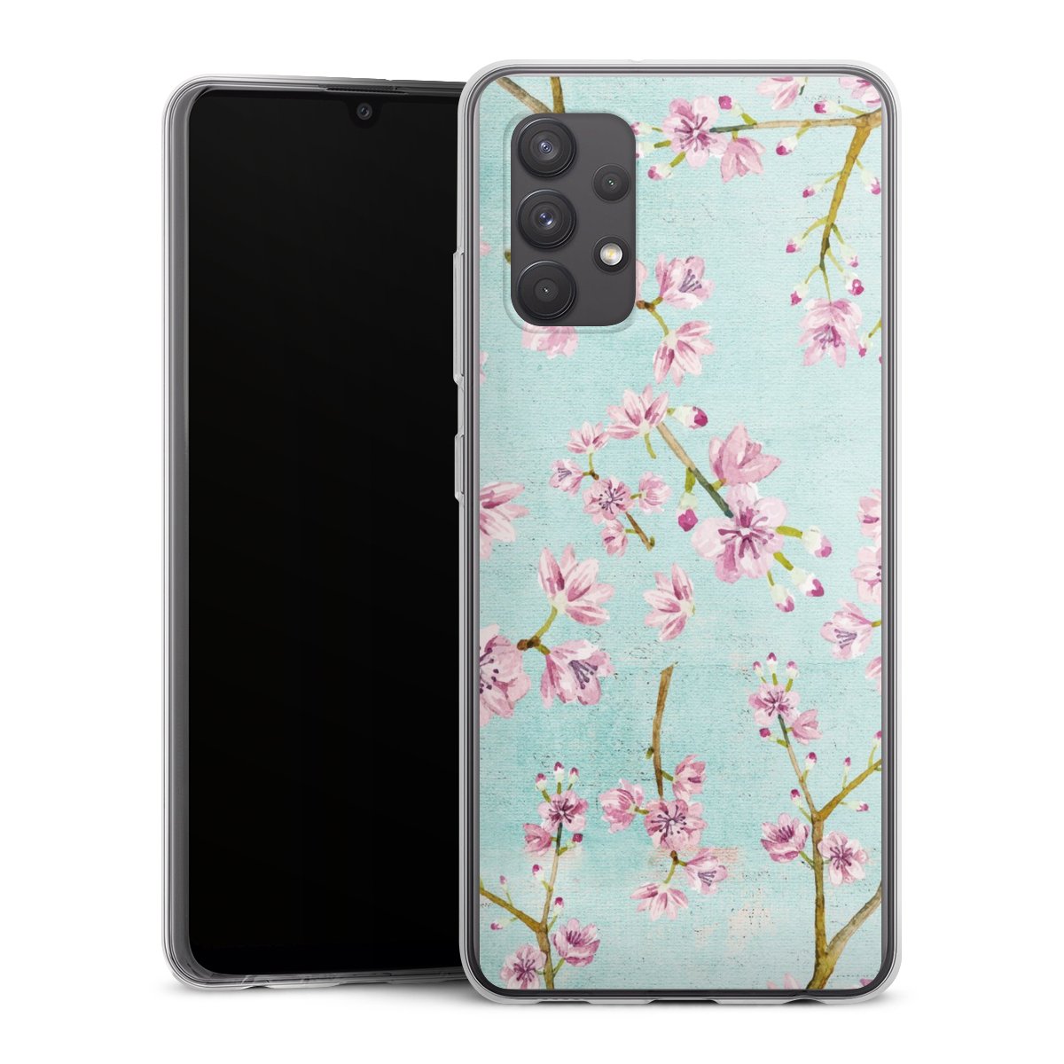 Cherry Blossom Twigs Pattern Light Blue
