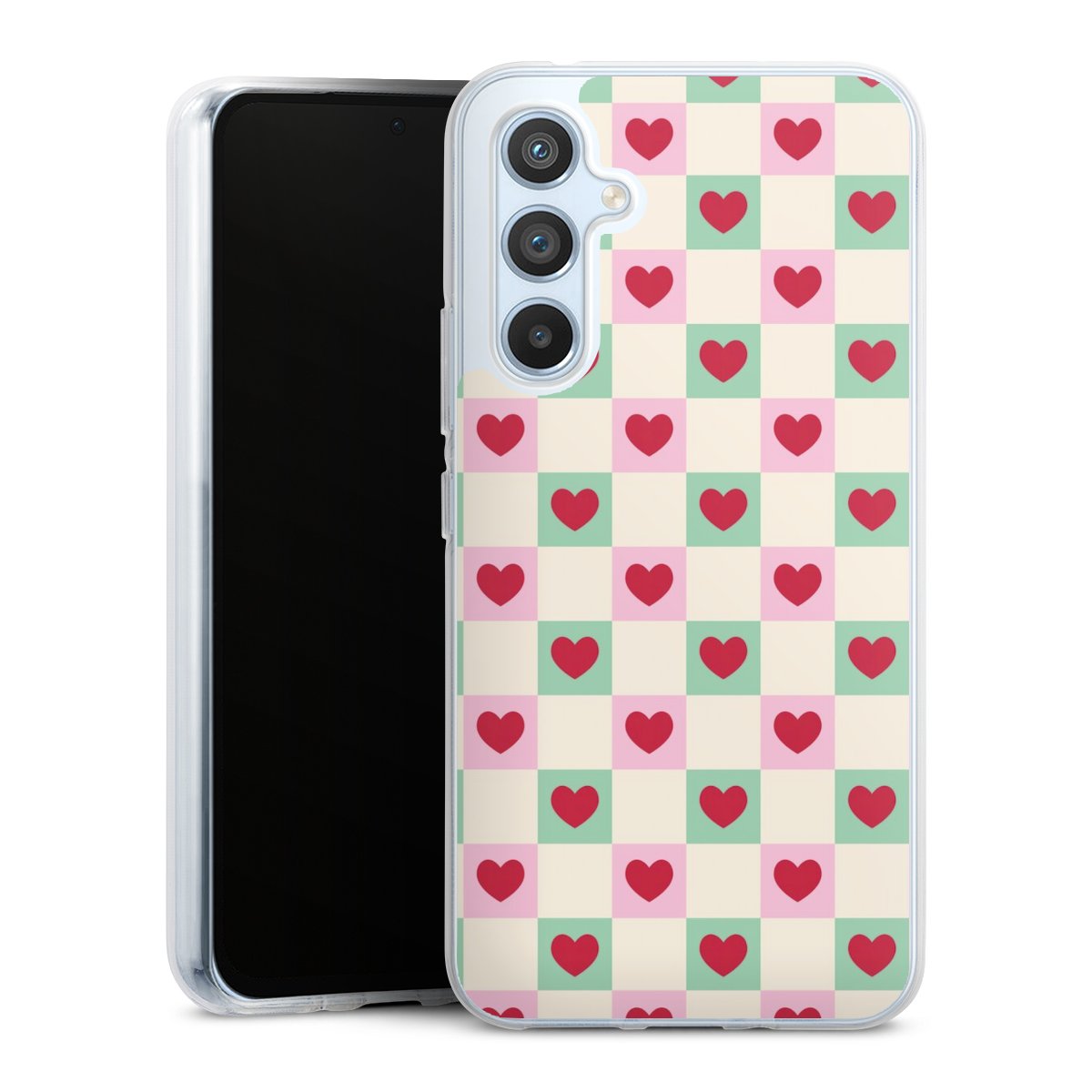 Valentine Checked Hearts Pattern Pink Green