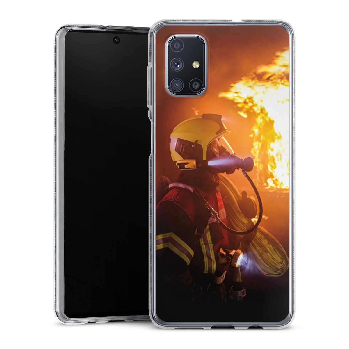 Firefighter Looking Up Explosion