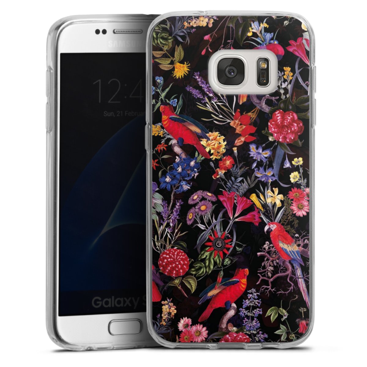 Dark Flowers and Parrots