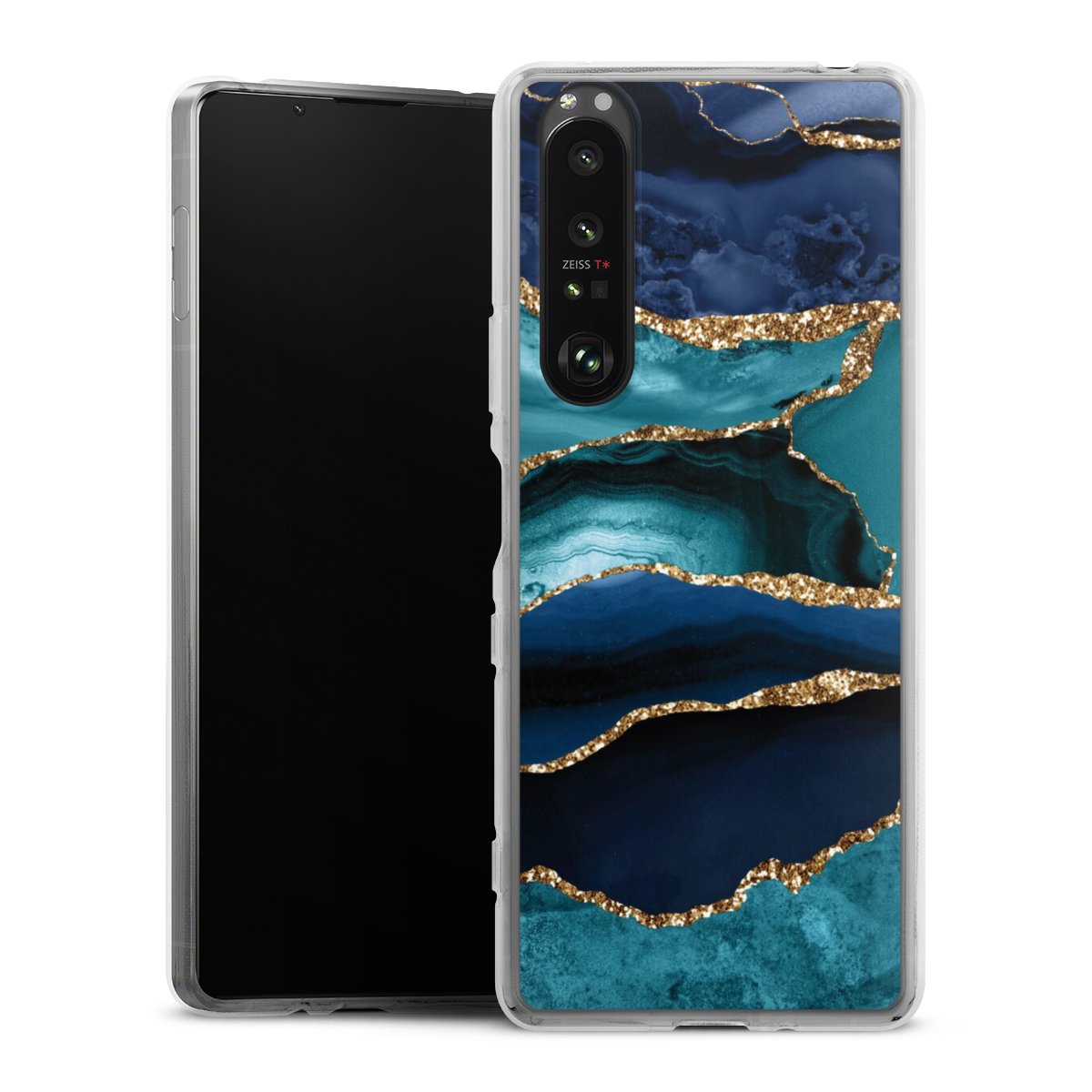 Dark and Light Blue Marble Gold Glitter Look