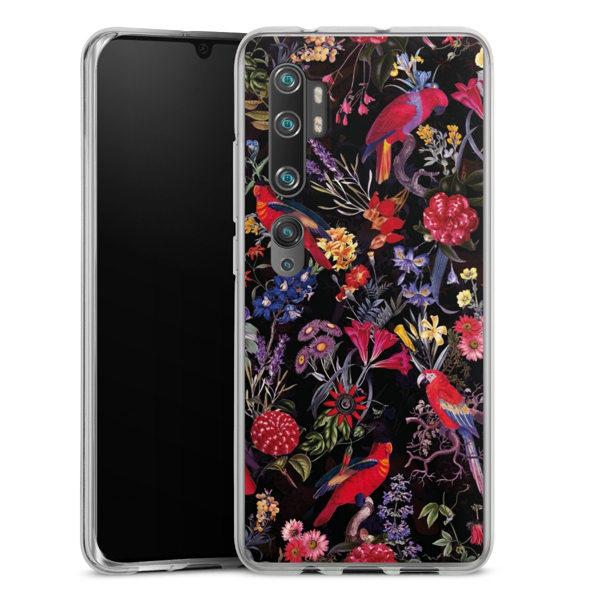 Dark Flowers and Parrots