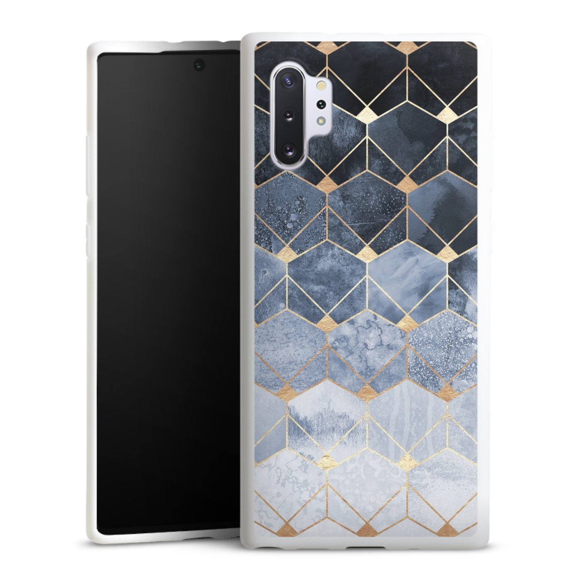 Blue Hexagons And Diamonds Gold Print