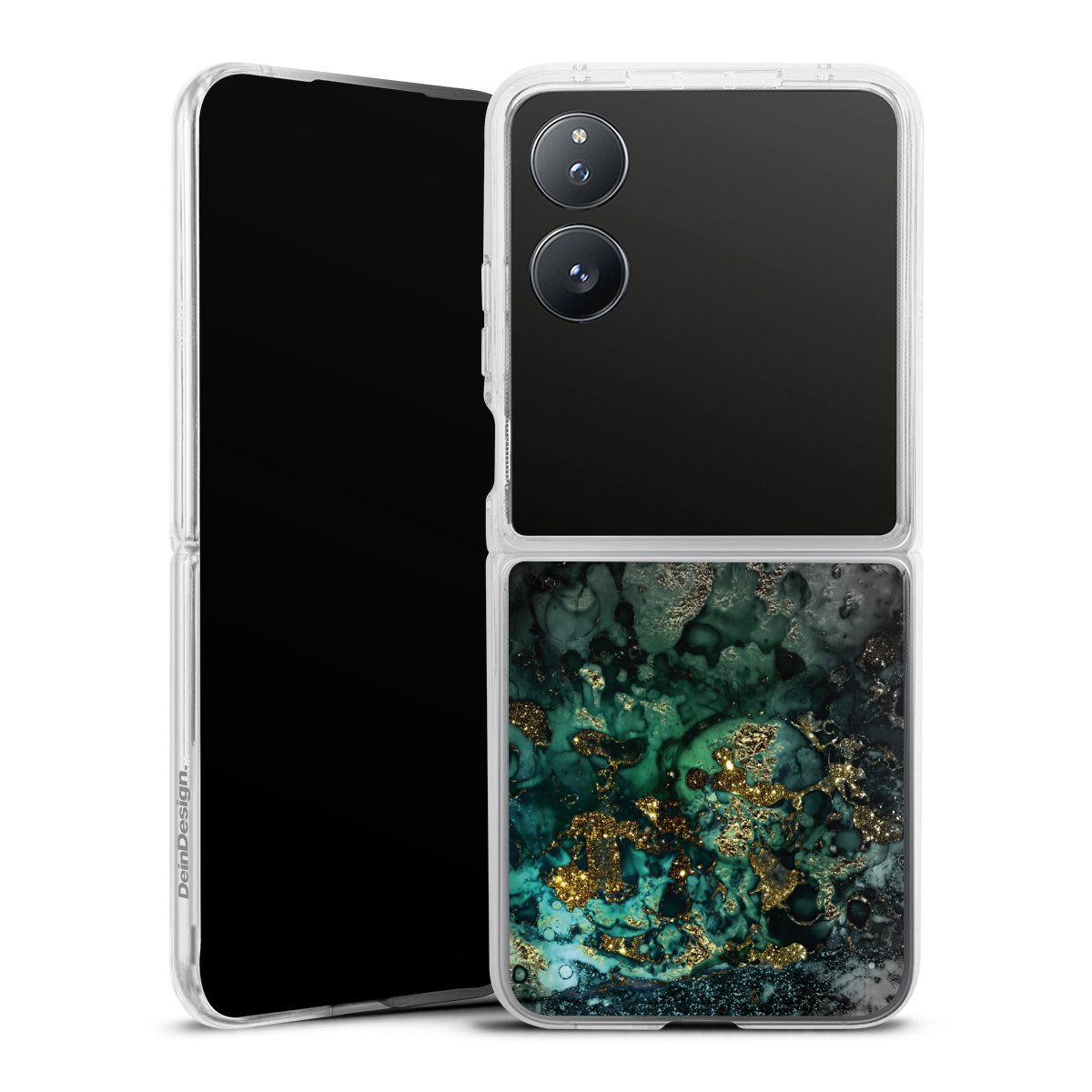 Cyan Glitter Marble Look