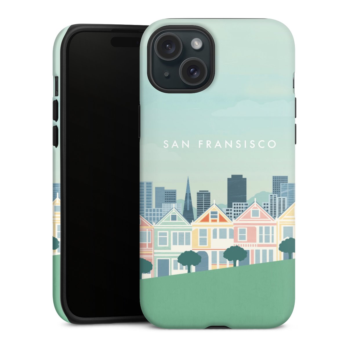 Kova kuori, pehmeä ydin: all over printti -kotelo joustavalla silikonisisuksella.