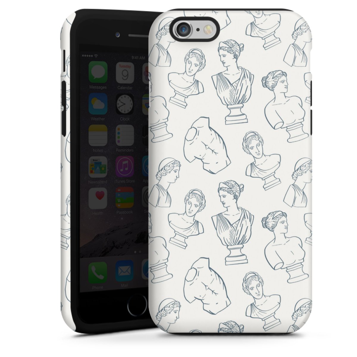 Kova kuori, pehmeä ydin: all over printti -kotelo joustavalla silikonisisuksella.