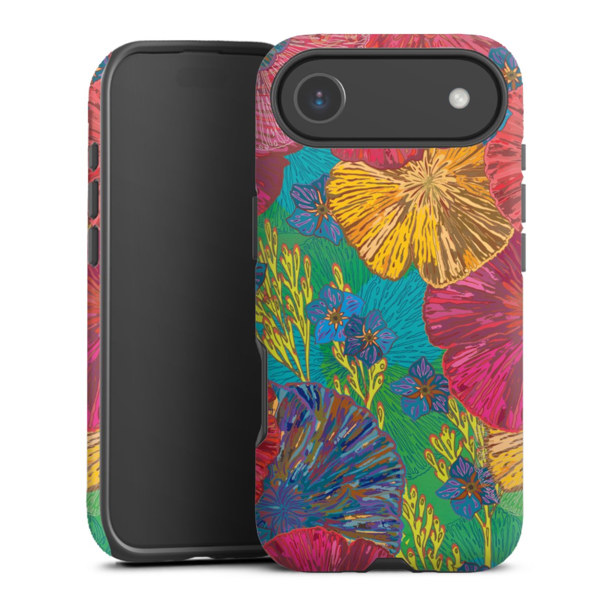 Kova kuori, pehmeä ydin: all over printti -kotelo joustavalla silikonisisuksella.