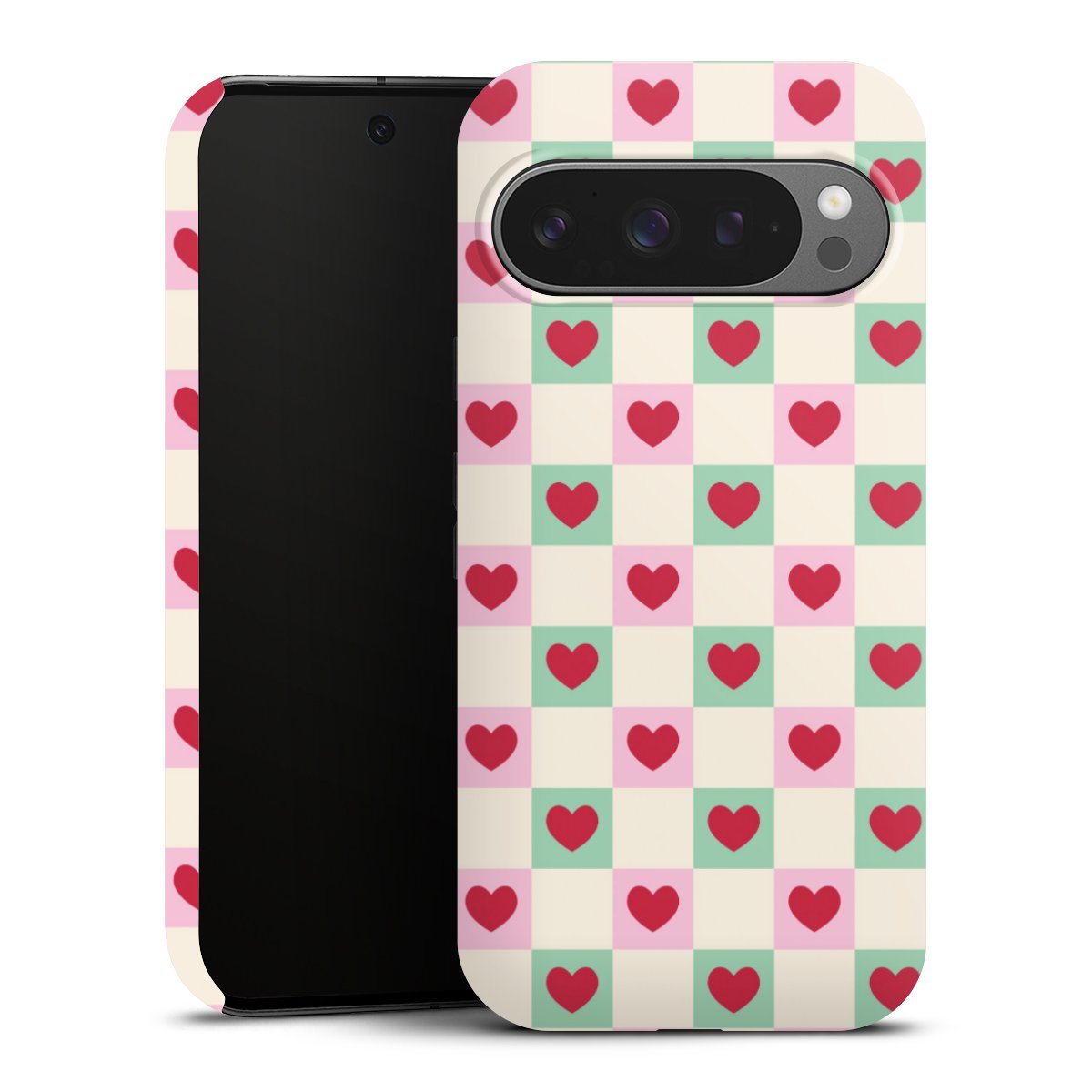 Valentine Checked Hearts Pattern Pink Green