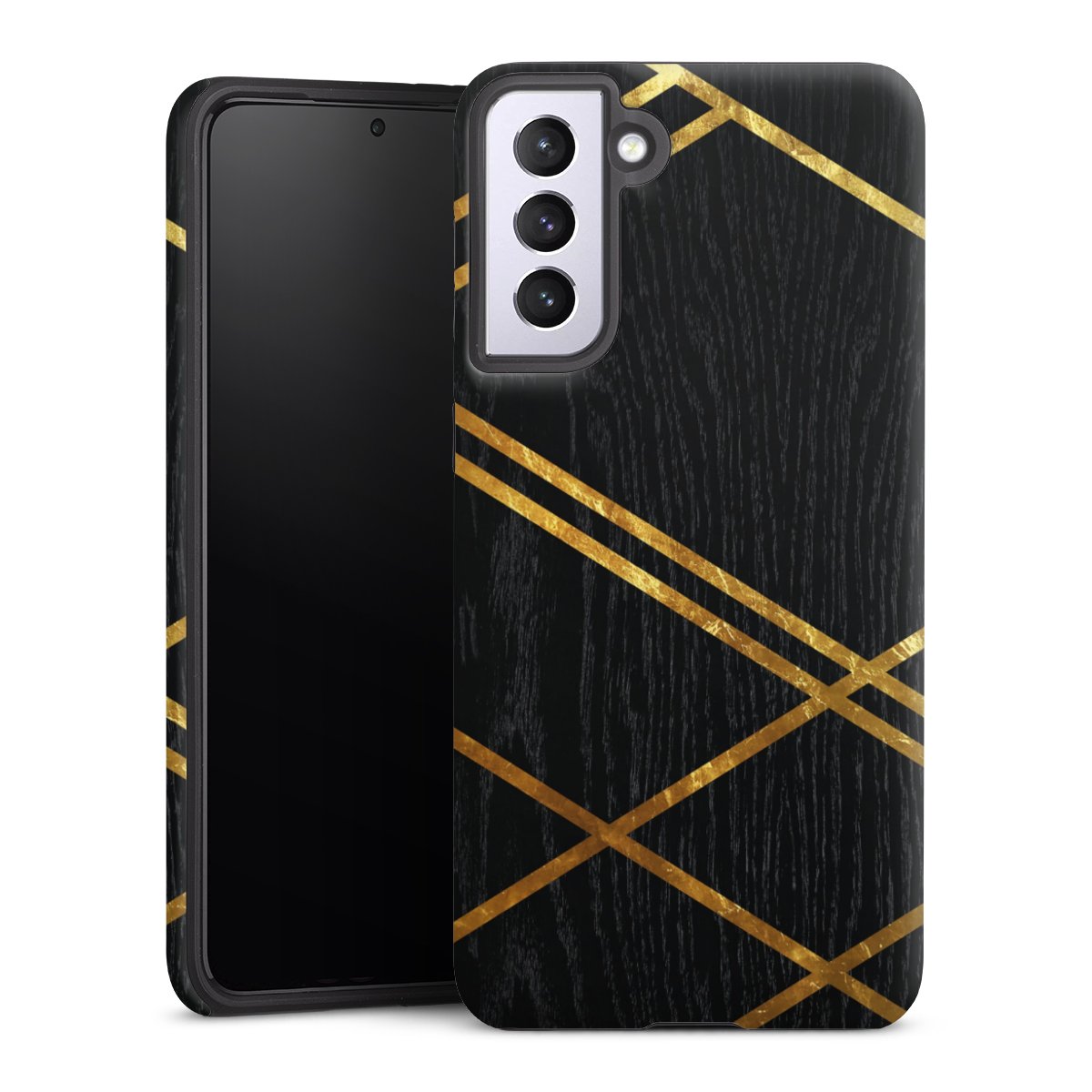 Black Geometric Pattern Golden Stripes